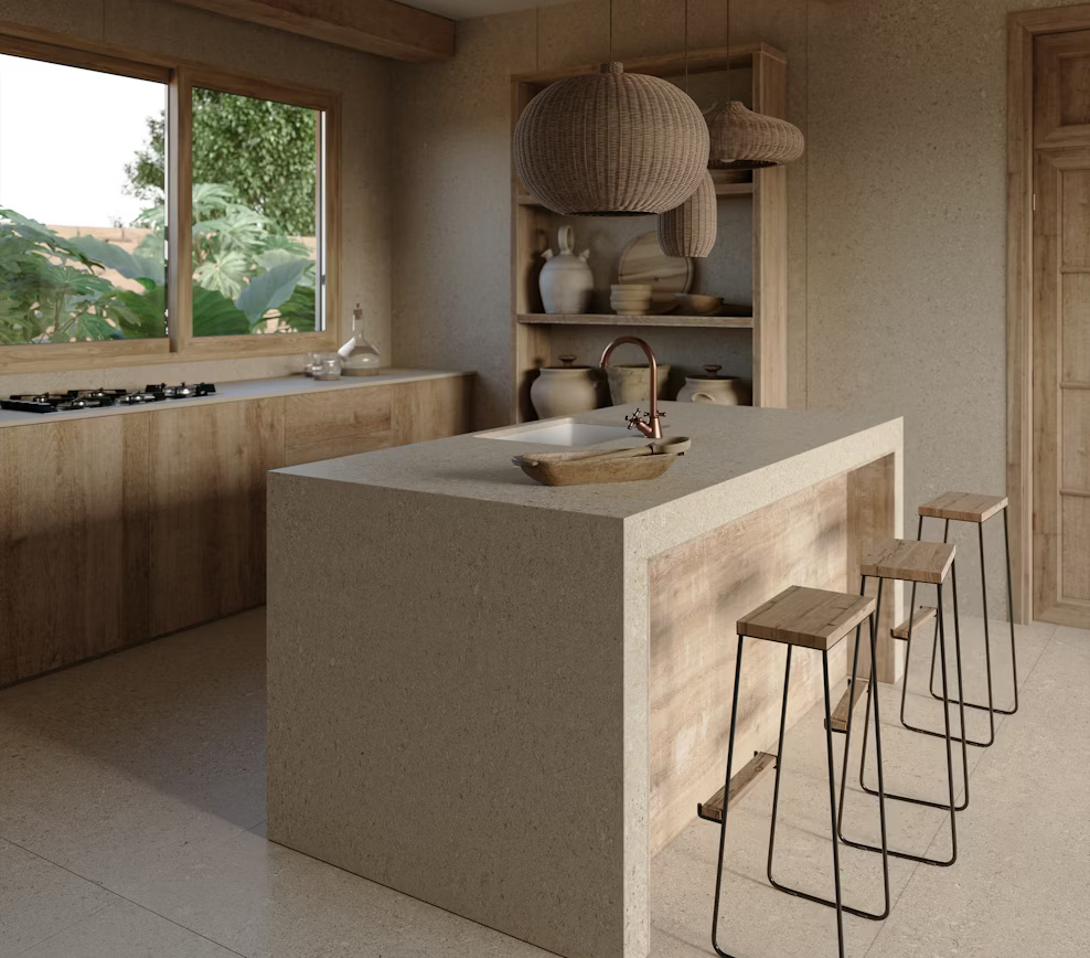 Mat yüzeyi ve düz–saten renk yapısı sayesinde Dekton Avorio; mutfak tezgahı, banyo yüzeyleri, yer ve zemin kaplamaları ile dış cephe uygulamalarında güvenle kullanılabilir. Kenarlarda desen sürekliliğinin önemli olduğu uygulamalar için ideal olan bu yüzey, Dekton’un yüksek dayanım teknolojisiyle ısıya, çizilmeye, lekeye ve UV ışınlarına karşı uzun ömürlü performans sunar. Ölçü, fiyat ve numune talepleriniz için WhatsApp üzerinden bizimle iletişime geçebilirsiniz.