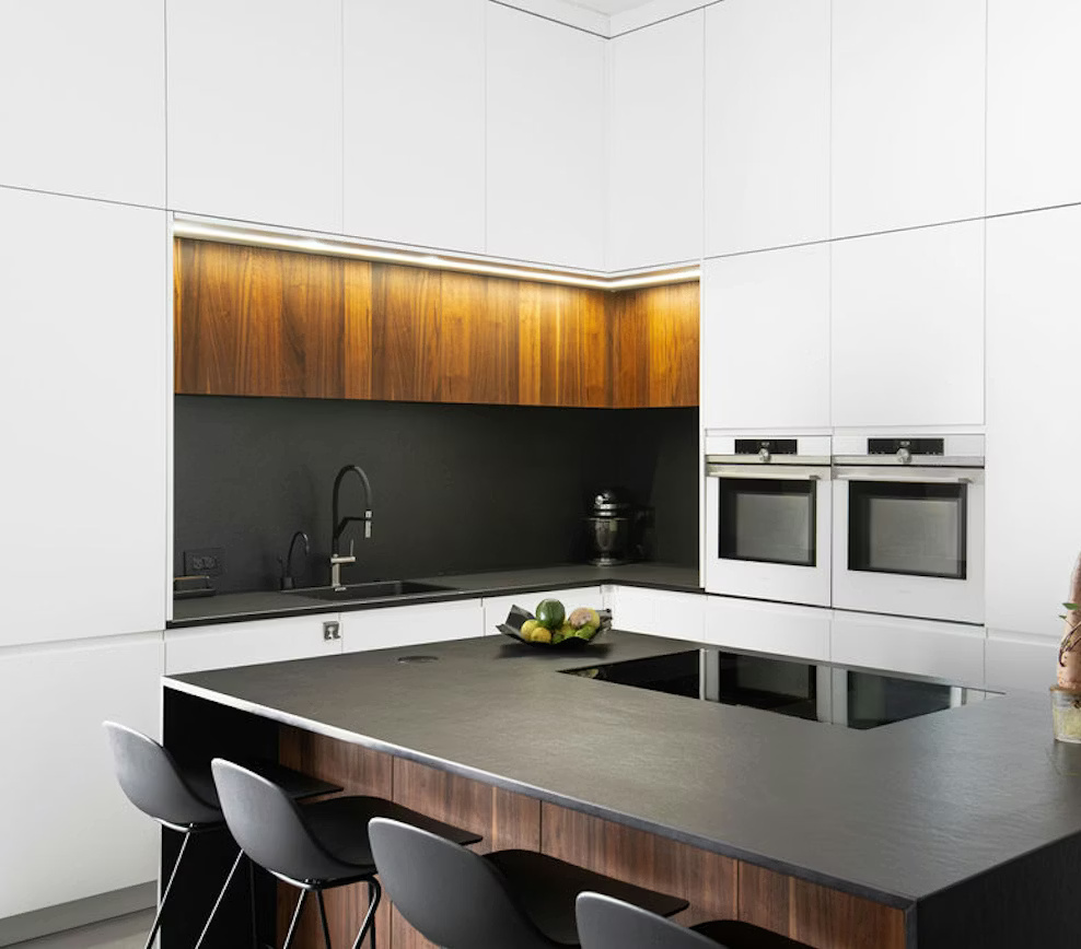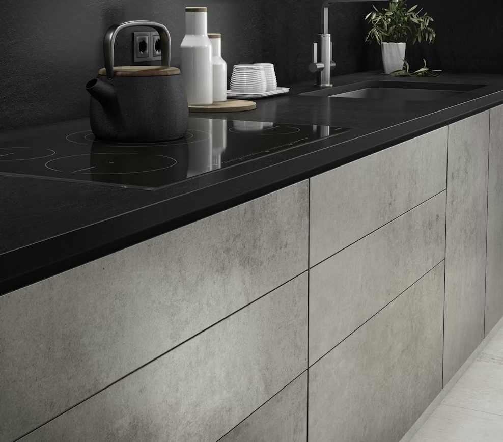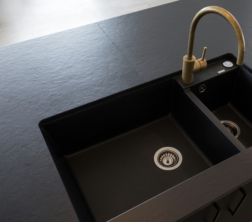 Dekton Sirius, derin siyah tonu ve yüzeyde hissedilen dokulu görsel etkisiyle güçlü, karizmatik ve sofistike bir Dekton porselen plakadır. Siyah zemin üzerinde fark edilen yeşilimsi alt tonlar, yüzeye doğal bir derinlik kazandırarak mekânlara modern ve etkileyici bir karakter sunar.
